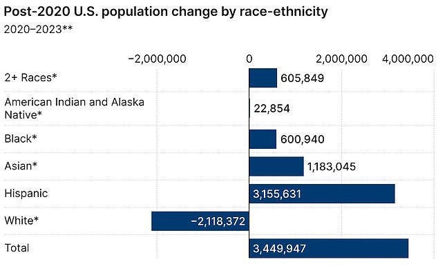 America’s native and foundational black and white populations are in steep decline. Particularly white Americans are facing a cultural genocide. Since 2020, while the foreign-born population has drastically risen, the population of white Americans has declined by north of 2 million people.